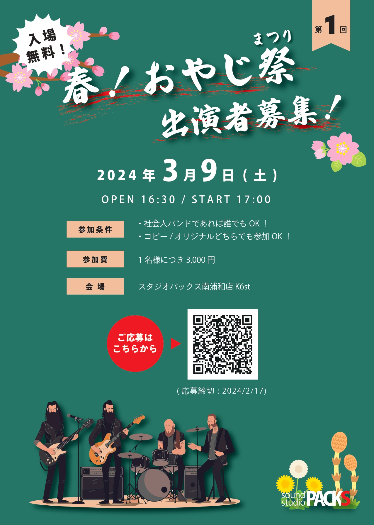 OPEN 16:30 / START 17:00参加条件 : 社会人バンドであればなんでもOK! 参加費 : 1名につき¥3,000